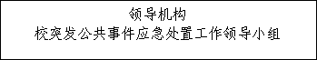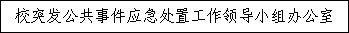 校突发事件应急处置领导小组下设领导小组办公室,办公室主任由校党委(校长、外事)办公室主任兼任,校园安全管理处、学生处、宣传部、信息中心、教务处、后勤保障处负责人任副主任。领导小组办公室是领导小组的日常办事机构,承担应急管理日常工作。在处理突发事件时,领导小组办公室协助各类突发事件指挥部的工作。